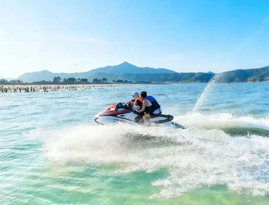东旦时尚运动海滩则主打原生态运动体验,海上摩托艇的风驰电掣、桨板竞速的默契配合,还有沙滩飞盘的随性畅玩,让海风成为最好的运动搭档。