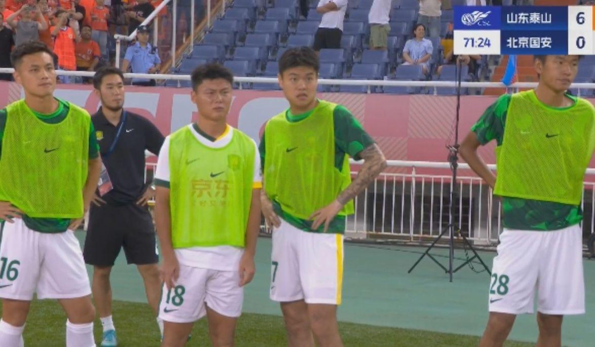 第71分钟,泰山队打反击,泽卡在右路传中,卡扎伊什维利中路甩开后卫,门前推射,上演大四喜!6-0,国安的防线彻底没了信心。侯森坐在地上,目光呆滞,而国安的替补们则呆若木鸡。